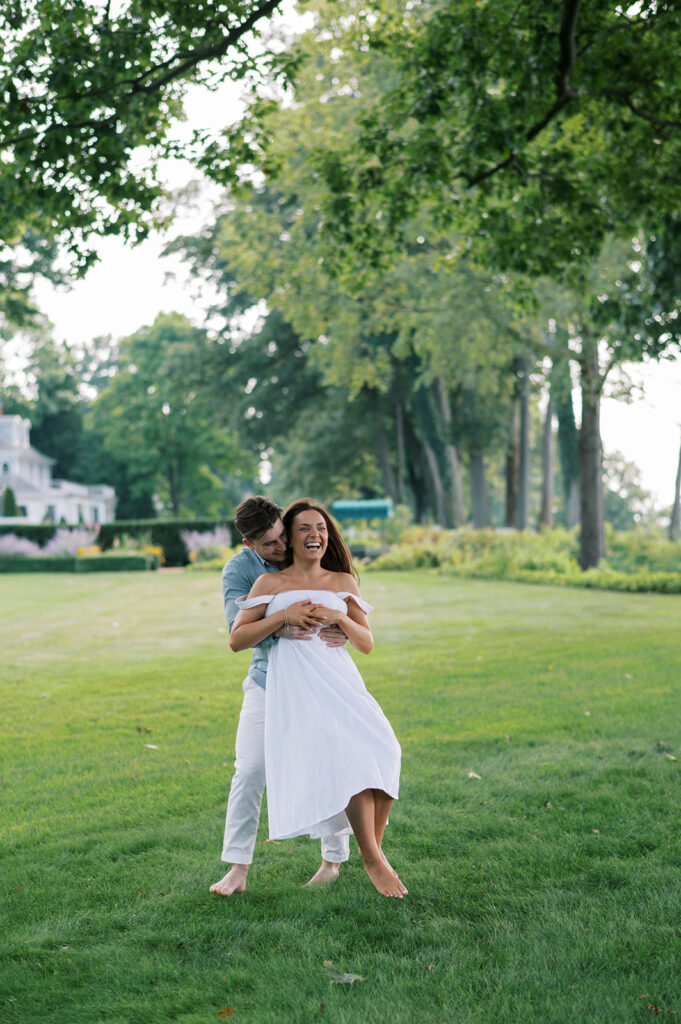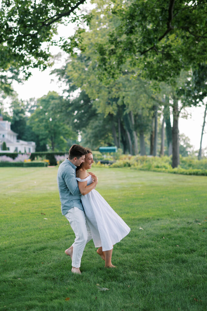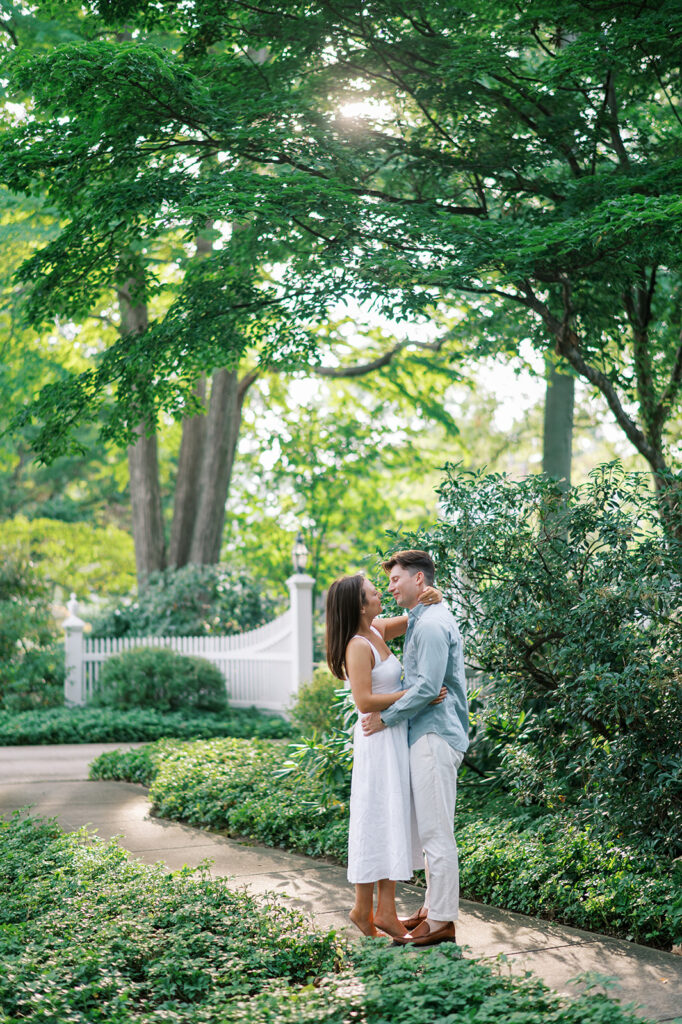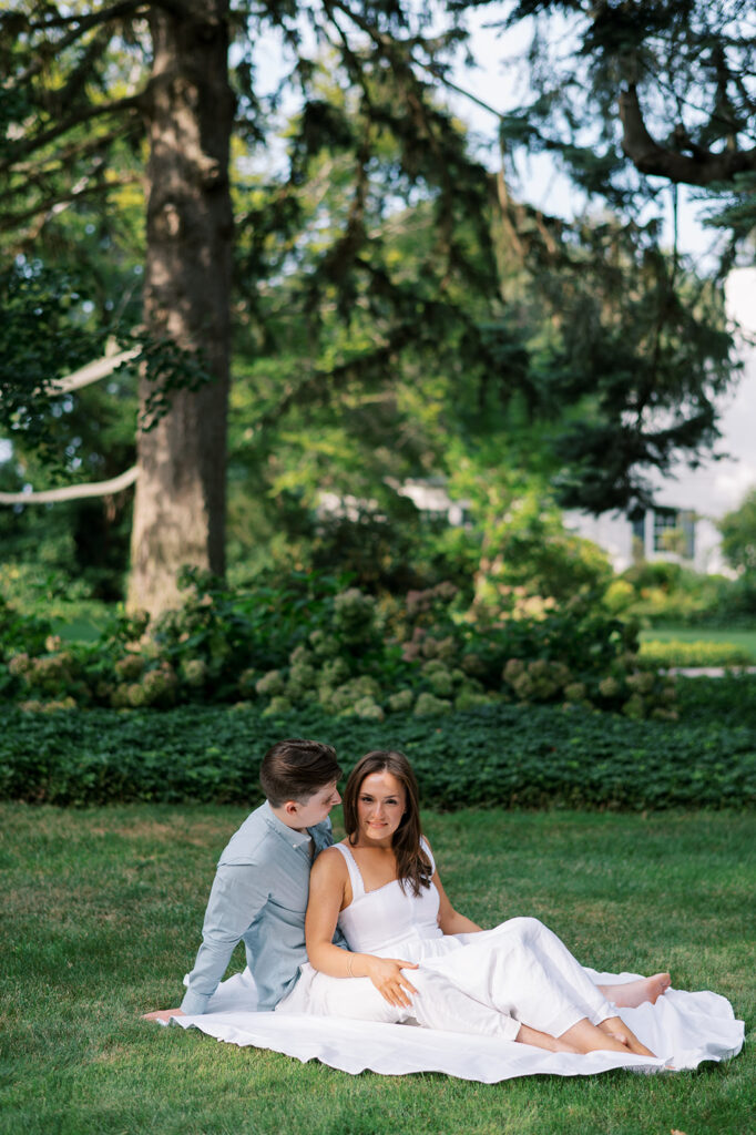 Nestled on a private property overlooking Lake Erie in Erie, Pennsylvania, Anne & Jake’s engagement session felt like a summertime dream. The towering trees provided shade and the harbor full of sailboats created a picturesque backdrop for their candid engagement session. The location holds even greater significance as the place where they’ll soon say, “I do.” This detail combined with Anne’s wardrobe choice added a layer of romantic foreshadowing to their photos that simply can’t be replicated!