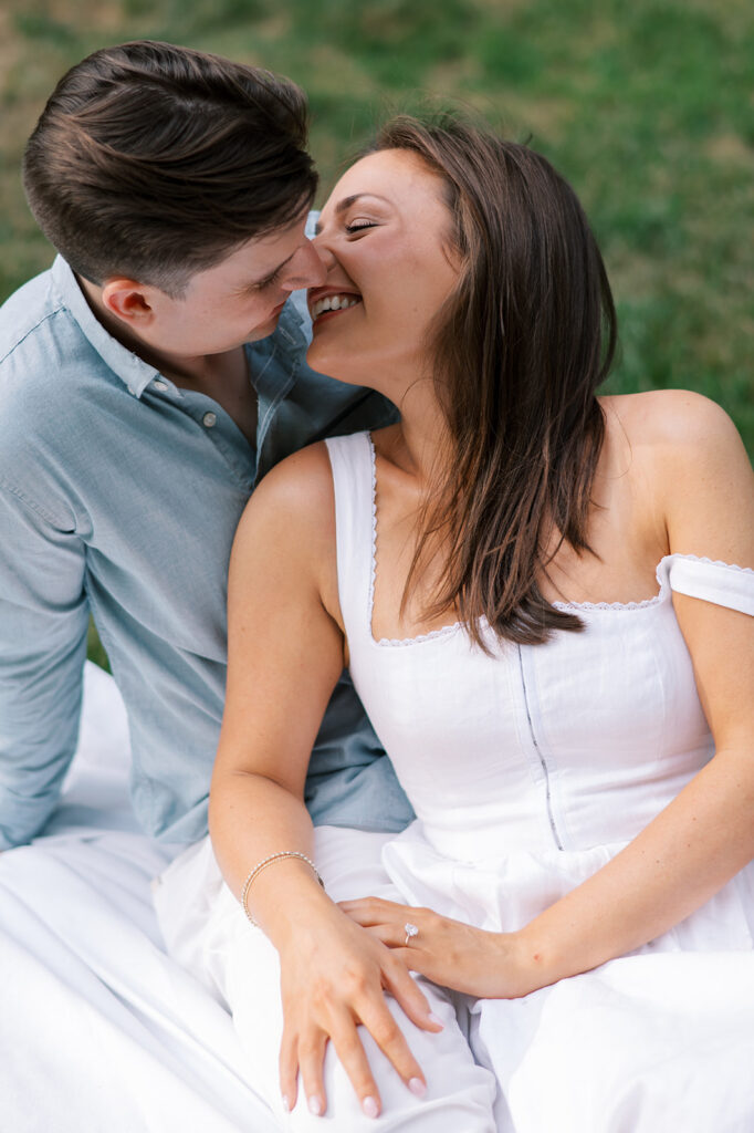 Given the time of year and setting, Anne and Jake couldn’t have chosen more fitting pieces for their Erie, PA engagement photos. Barefoot and carefree, Anne wore a white linen dress that moved effortlessly in the summer breeze, while Jake kept it classic in a crisp blue button-down. Their relaxed style perfectly mirrored the warm, laid-back vibe of the day. Speaking of keeping on brand– this couple was completely at ease during our session and they were perfectly playful. When my couples are as serene & in love as these two, it makes the candid shots so much simpler to achieve!